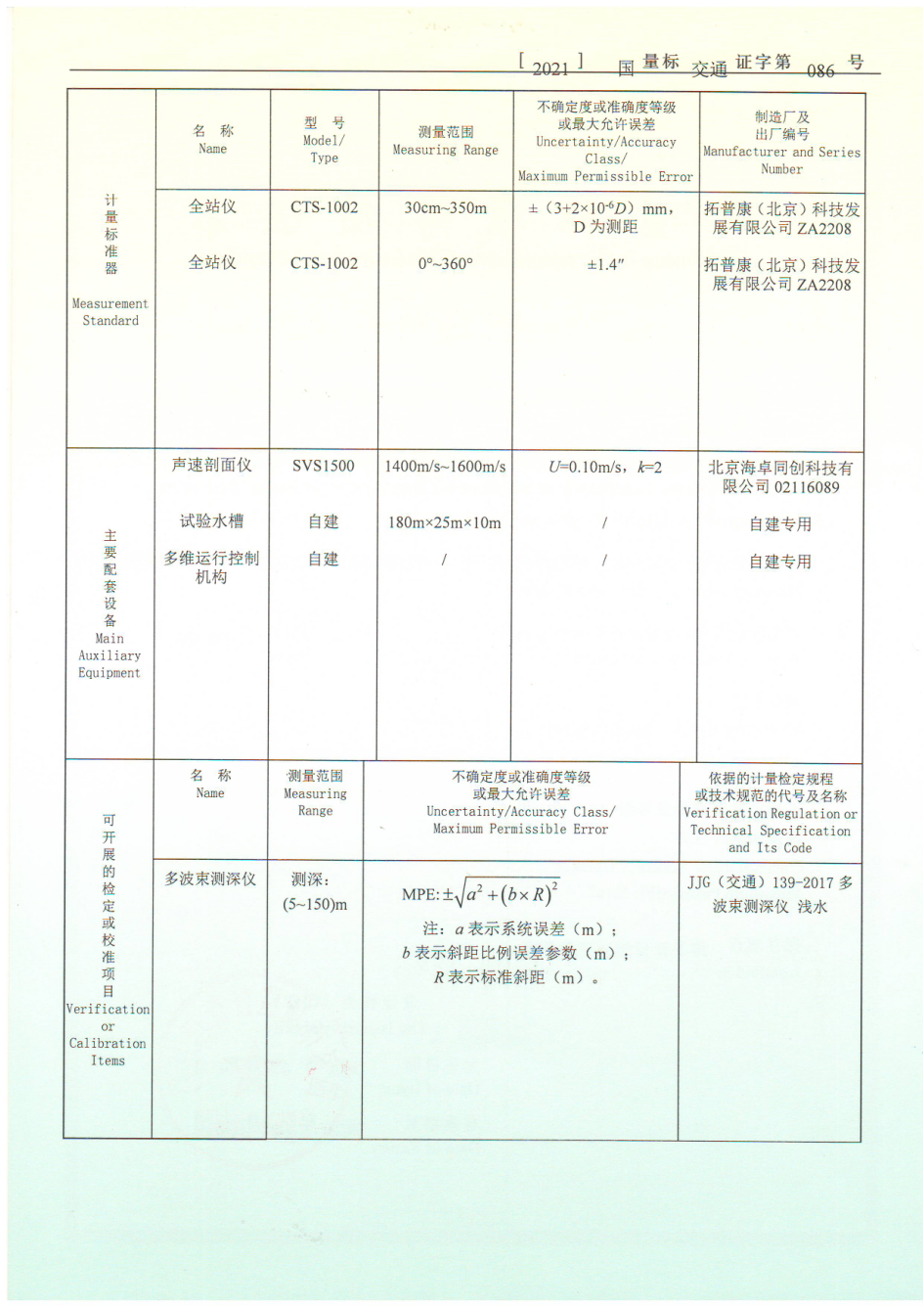 检校规程:JJG(交通)139-2017 多波束测深仪 浅水规程