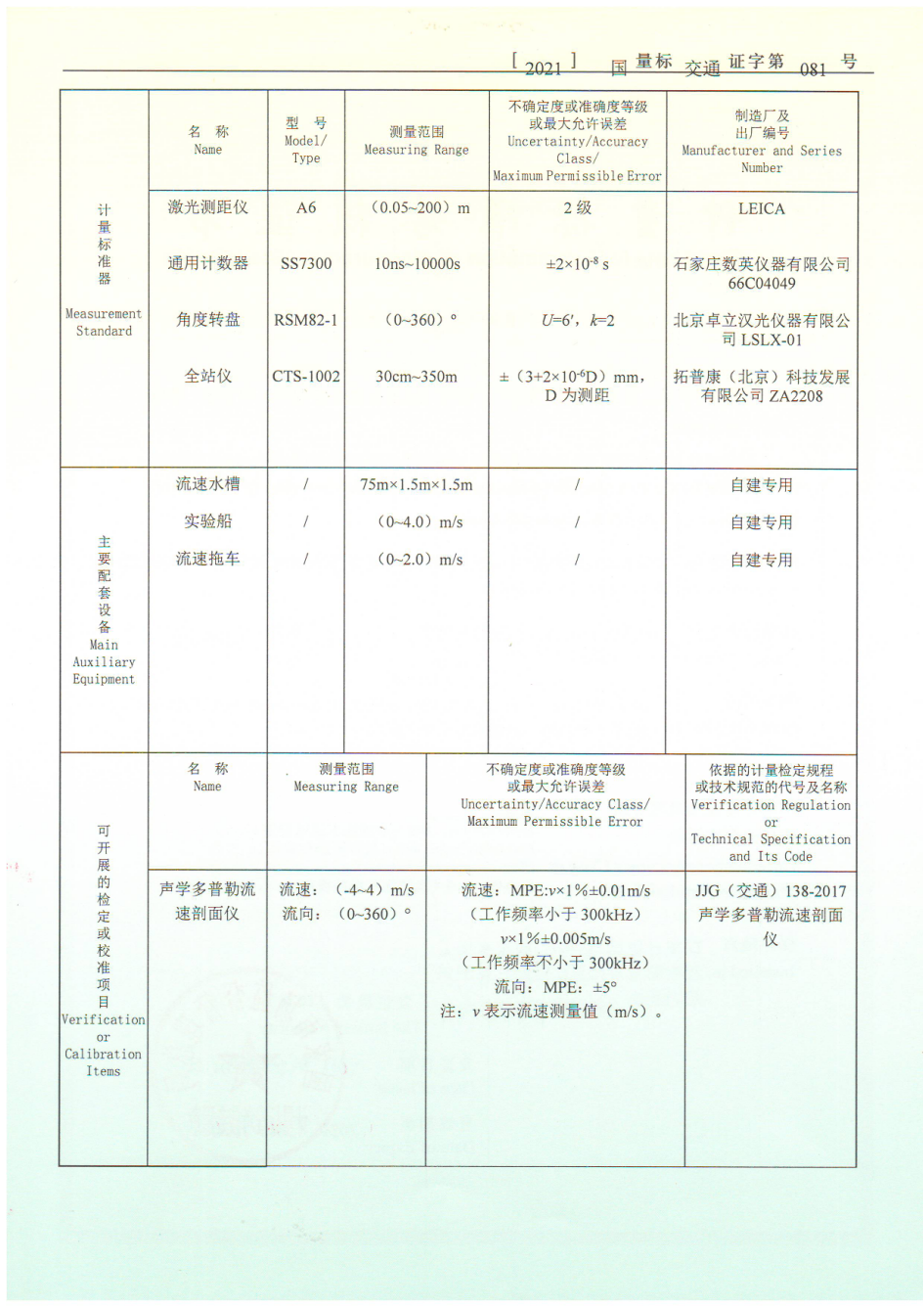 计量器具名称:声学多普勒流速剖面仪(ADCP、超声波流速仪、海流计)