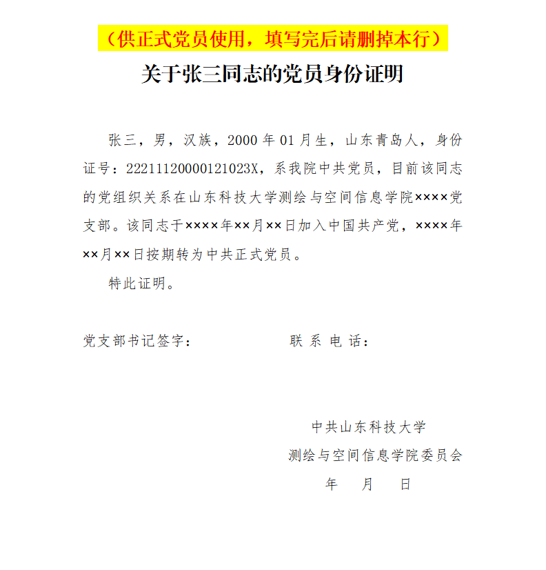 中共正式党员证明撰写指南: