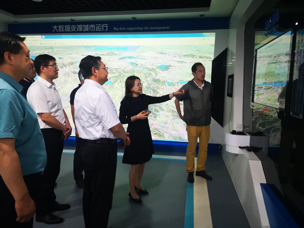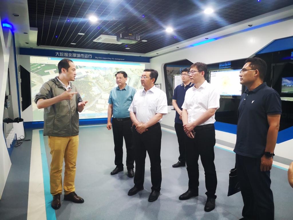 青岛市勘察测绘研究院纪委书记王成刚、青岛星科瑞升信息科技有限公司总经理孙林等人对尹华一行来访表示热烈欢迎,并带领参观了单位办公环境、展厅,介绍了单位的基本情况,并围绕单位需求提出建议。