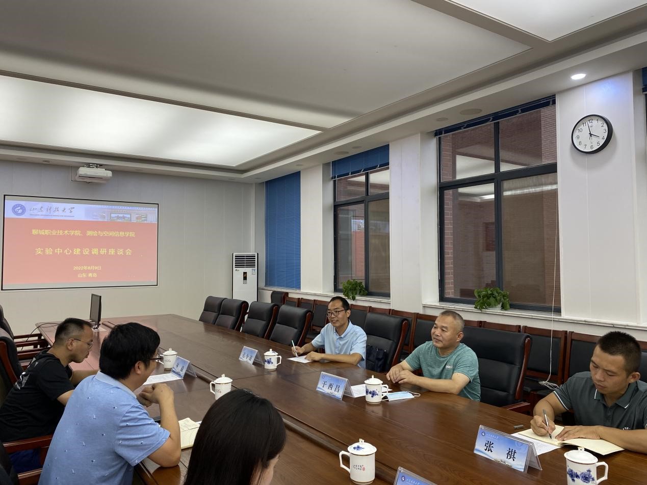 2022年8月9日下午,聊城职业技术公司建筑工程系于西昌主任、教学科主任张祺、公司2005级员工测绘地理信息技术专业教研室主任孔令遂一行3人,来访调研测绘专业及实验室建设。MK体育副经理刘尚国、测绘工程系韩晓冬教授、林淼老师及团委赵铭老师参加了座谈。