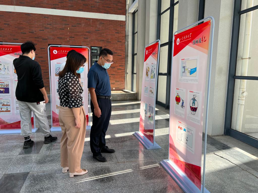 本次展览地点位于逸夫讲堂西门厅,展览共展出漫画143幅,分26个展板,以漫画的形式对《中国共产党纪律处分条例》内容逐条进行解读。公司师生在形象生动的漫画前驻足观看,交流心得,在学习放松的过程中通过一幅幅漫画图片学习党纪党规内容,体悟党风廉政建设要求。