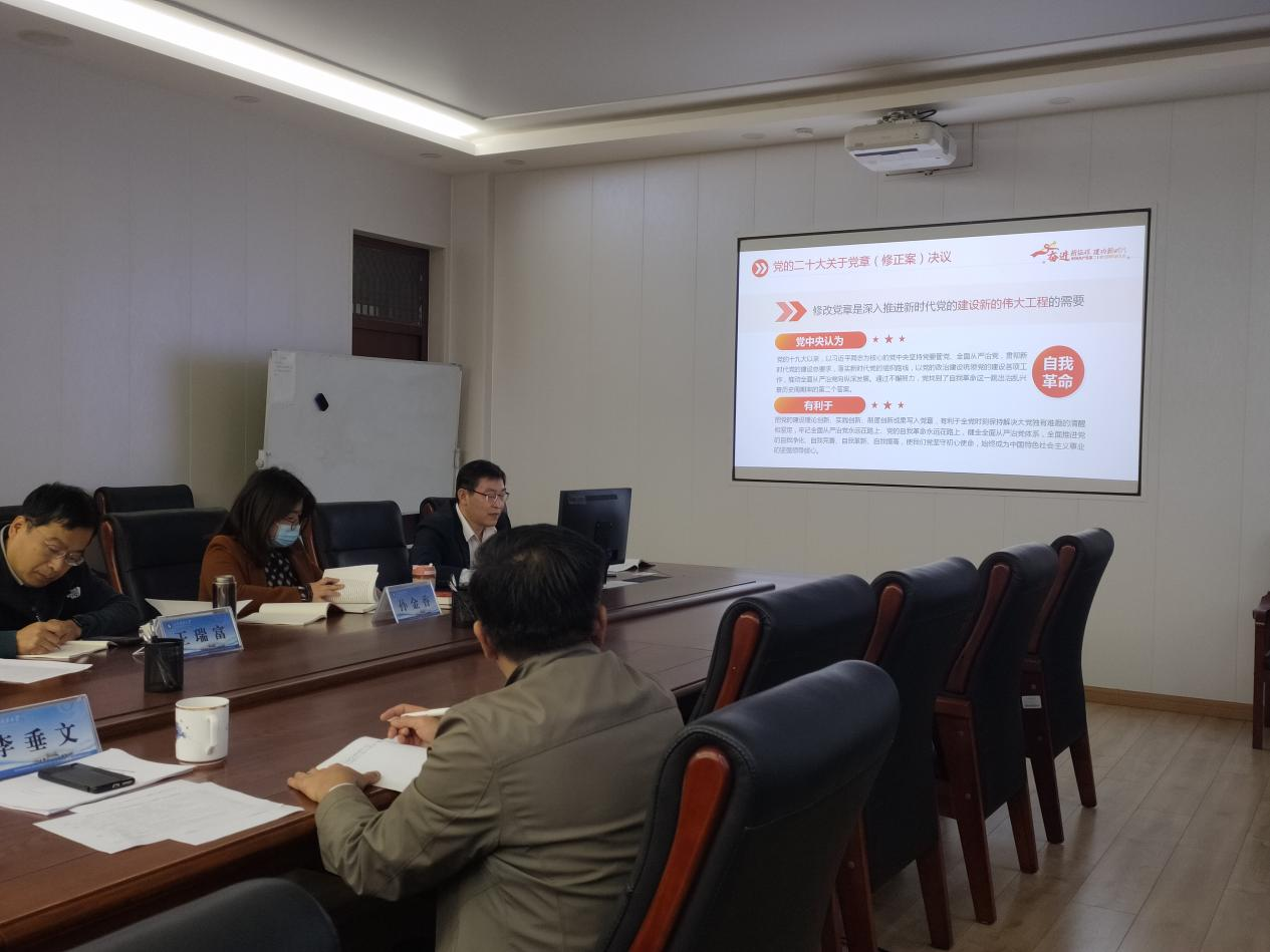 会上,第一阶段与会成员集体观看了专题教育片《领航》之自我革命,对习近平新时代中国特色社会主义思想进行了学习。随后,秦昌盛结合党的二十大关于《中国共产党党章(修正案)》的决议对《中国共产党章程》进行了学习辅导。第二阶段,公司班子成员结合对党的二十大精神的学习体会就如何促进公司高质量发展进行了交流研讨。
