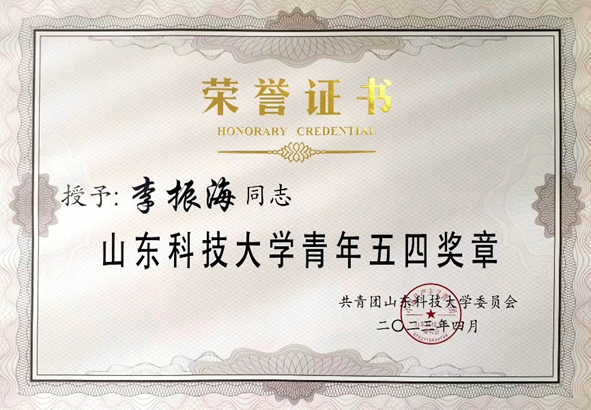 【全国煤炭行业“优秀共青团员”获得者】薛浩然,现为测绘工程专业2019级1班员工、公司兼职辅导员,中共党员。学习成绩优异,专业排名第4/96,曾获省级及以上奖项8余项,校级奖项15项。曾任校国旗护卫队队长,组织完成西海岸新区政府升旗仪式、区全民运动会及校运动会等校内外重大活动70余次。现已推免至华中科技大学攻读博士研究生。(通讯员:孙金香、韩冰)