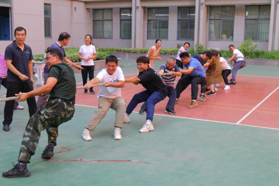 在拔河比赛中,比赛还未开始,老师们便已经压低重心,蓄势待发,摆好了“一拔头筹”的姿势。随着裁判员的一声令下,老师们立刻咬紧牙关、向后倾倒,双手紧握长绳,铆足了劲拼命往后拉。对阵双方势均力敌,互不相让,表现出强大的向心力和凝聚力。在场师生的加油声、呐喊声响彻赛场,竞技与友谊齐飞,热烈与欢笑共舞。