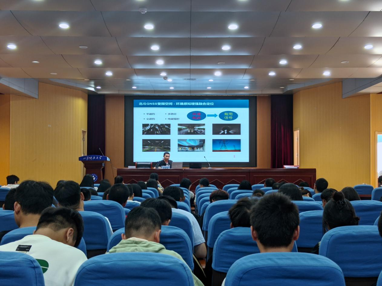 会上,柳景斌首先介绍了相关研究背景及环境感知增强室外融合定位方法,展示了感知增强模型、环境感知增强的弹性融合定位框架等内容;随后介绍了面向行人的手机室内融合定位、面向自动驾驶车的室内外融合定位、基于机器人的地下管道智能检测等技术,并展示了相关研究成果。最后,柳景斌教授对参会师生的问题做了详细解答,并进行了交流讨论。