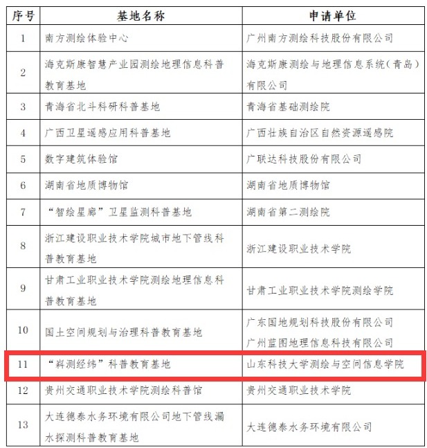 全国测绘地理信息科普教育基地(第二批)认定名单