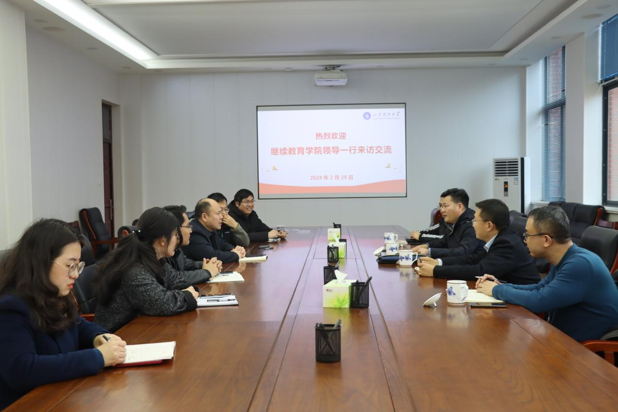 2月29日,继续教育公司党委书记贾长响、经理马鹤一行来访公司交流,公司党委书记范俊峰会见客人并座谈。