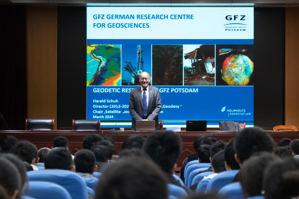 3月12日上午,MK体育第89期“名家讲坛”在J6-434报告厅成功举办。本期讲坛邀请德国波茨坦地学研究中心(GFZ)、柏林工业大学教授、国际大地测量学会荣誉主席、德国大地测量委员会主席Harald Schuh以“Geodetic Research at GFZ Potsdam”为题作报告,上海天文台葛茂荣教授及MK体育相关专业师生参会。
