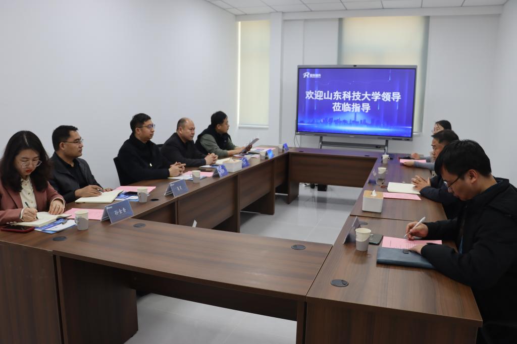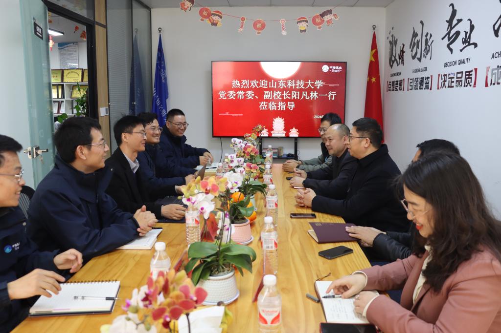 青岛中海基业海洋科技公司总经理侯健、星科瑞升信息科技有限公司董事长孙林、青岛知一新材料有限责任公司总经理王忠卫对阳凡林副董事长一行的到访表示了热烈的欢迎,并亲自带领参观了企业成就展、办公场所、实验室等地方,介绍了单位业务范围、应用领域等基本情况。双方就促进团队建设、人才培养、科研成果转化等校企合作相关事宜展开了深入探讨并达成合作意向。