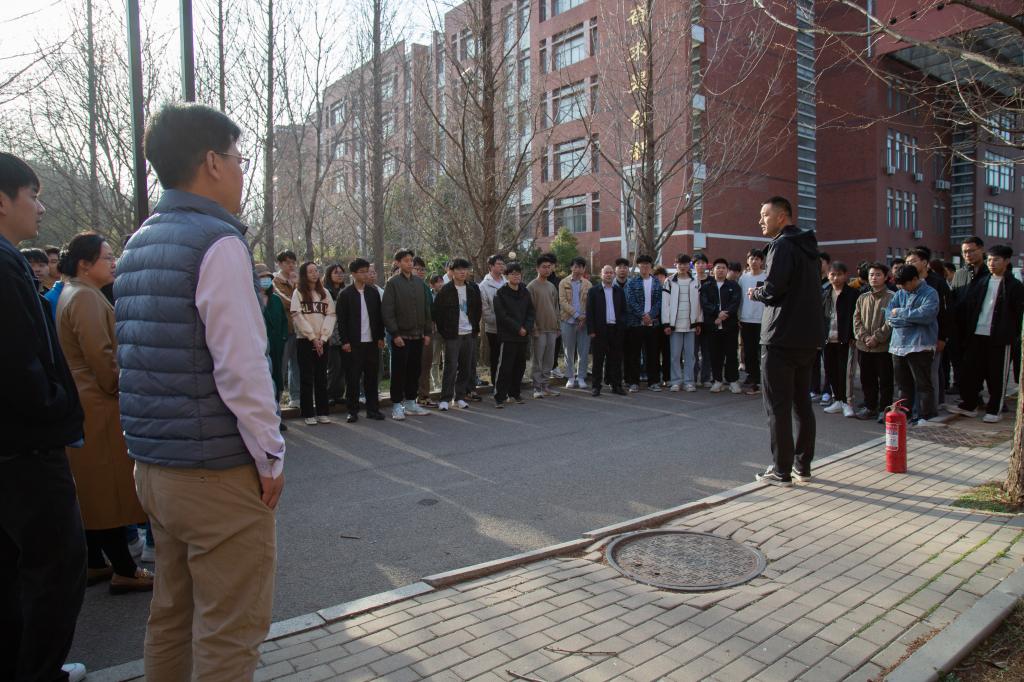 随着疏散撤离工作的完成,师生们集体来到了J14南侧进行灭火培训和消防实战练习。讲解员详细介绍了火情出现时的应急处理流程,展示了手提式干粉灭火器和消火栓的正确操作方法,师生们纷纷前去尝试,并进行了实战演练。