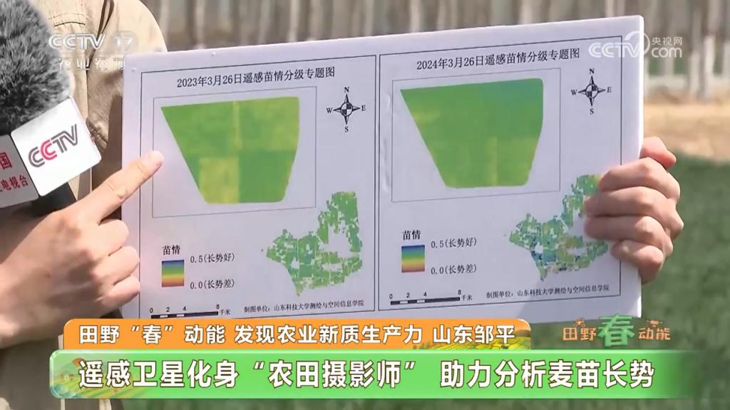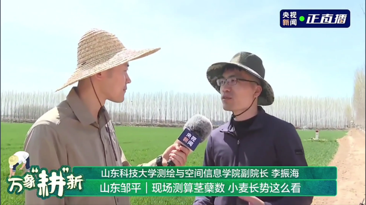3月29日,中央电视台农业农村频道播出的《田野“春”动能——发现农业新质生产力》节目,直播报道了邹平市明集镇数字农业:卫星天上“看”,数据“云”里算,科技助力小麦春管。李振海教授团队以彩图形式讲述了如何将遥感卫星化身“农田摄影师”,实现农田苗情精准监测,为小麦春季管理提供了科学依据。