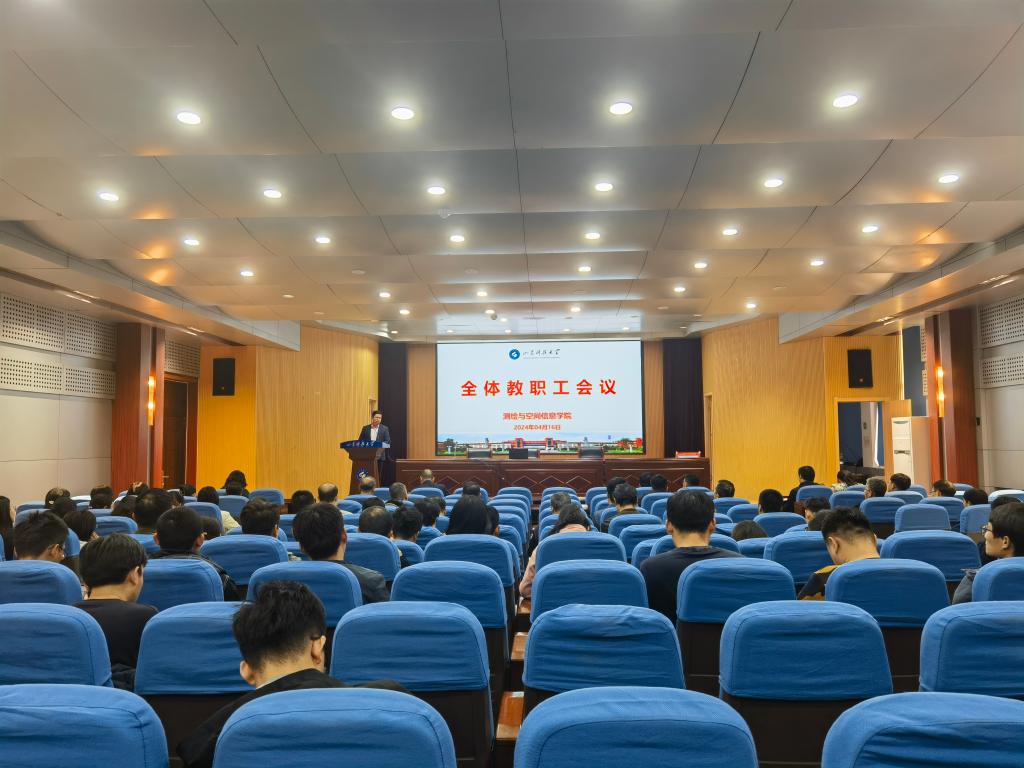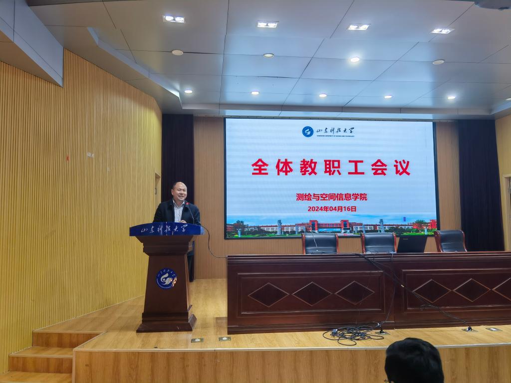 4月16日,MK体育在J6-434报告厅召开全体教职工大会。党委书记范俊峰、经理涂锐及公司领导班子成员,全体教职工参加了会议。