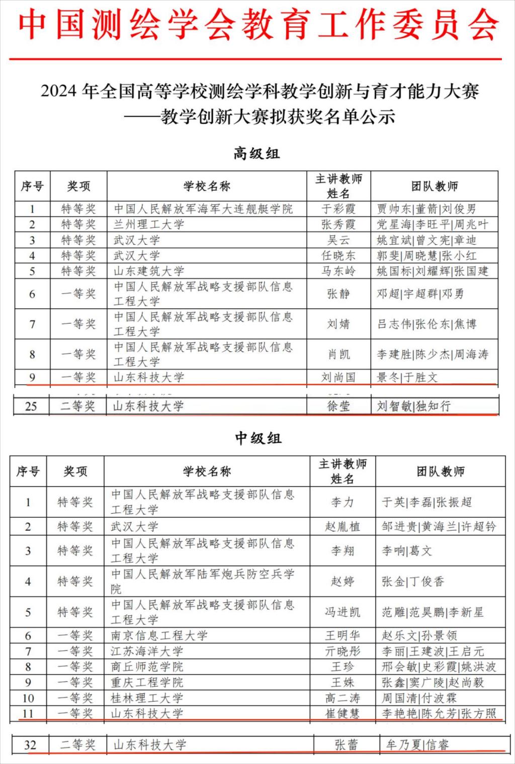 据悉,全国高校测绘学科教学创新与育才能力大赛被纳入2022版全国普通高校教师教学发展指数“教学竞赛”特别维度,已成为测绘学科的最高级别赛事。本届比赛中,高级组共决出特等奖5项、一等奖10项、二等奖15项,中级组决出特等奖5项、一等奖10项、二等奖20项。