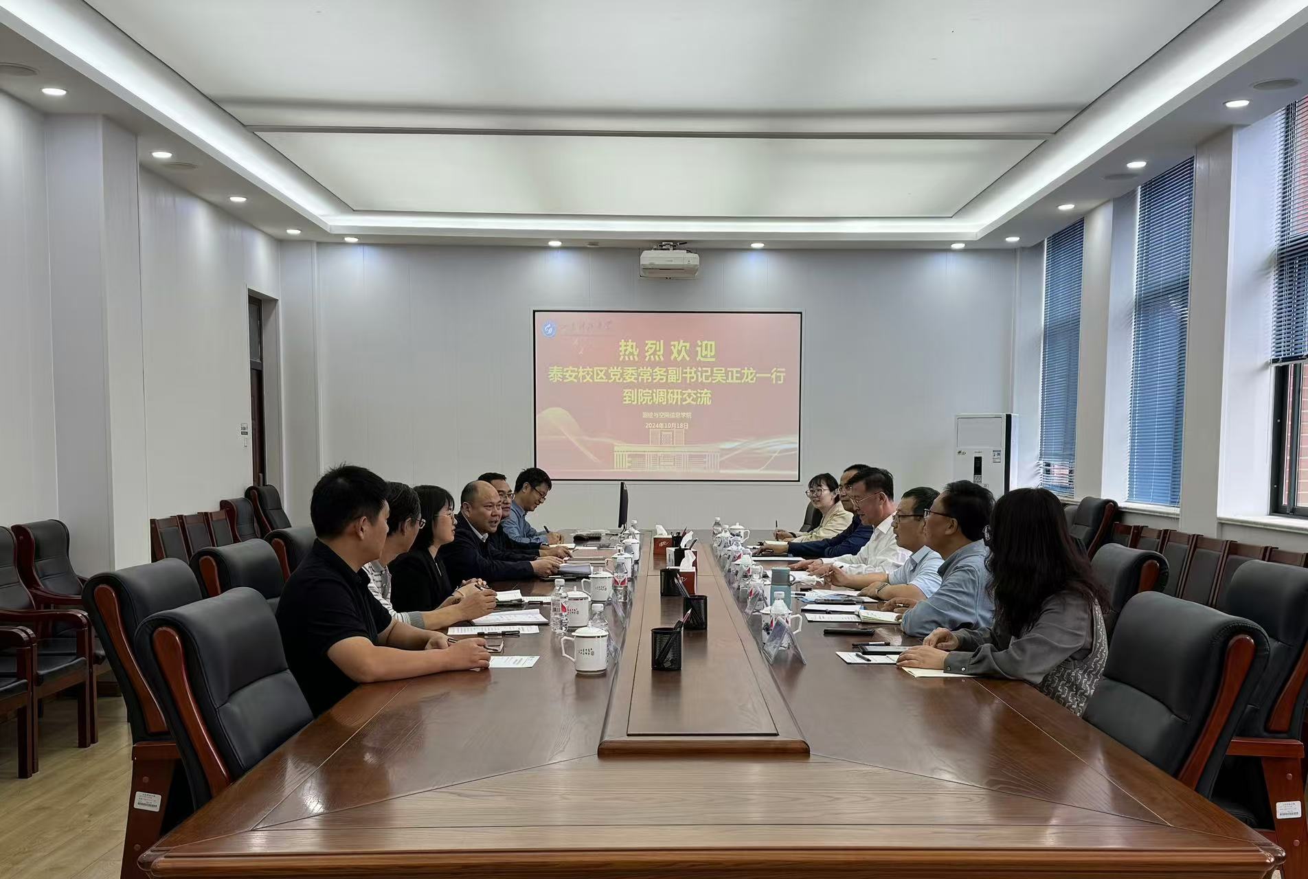 10月18日上午,泰安校区党委常务副书记吴正龙一行6人到MK体育调研交流党建“双创”工作。公司党委书记范俊峰、党委副书记吴昊、学工办主任(团委书记)孙金香、自然资源部海洋测绘重点实验室党支部书记罗宇和教师代表参加会议。会议由范俊峰主持。
