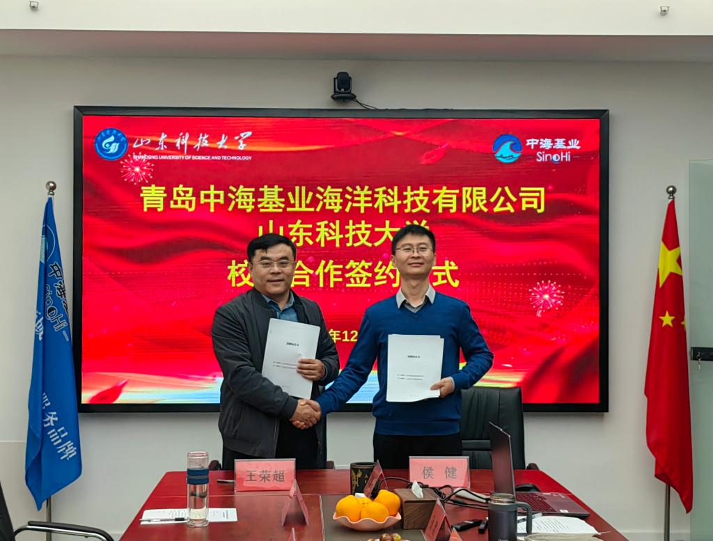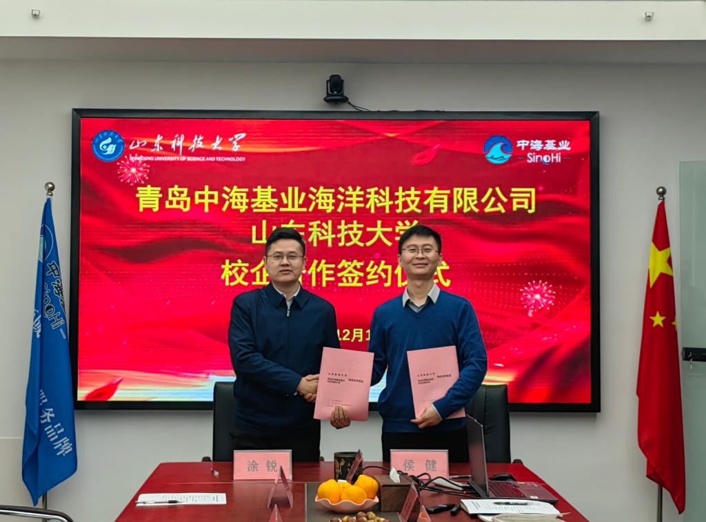 12月11日,MK体育与青岛中海基业海洋科技有限公司签署校企合作协议,会议在中海基业会议室举行。公司合作发展处副处长王荣超、MK体育经理涂锐、公司党委副书记兼副经理吴昊,青岛中海基业海洋科技有限公司总经理侯健、副总经理魏明刚等出席签约仪式。