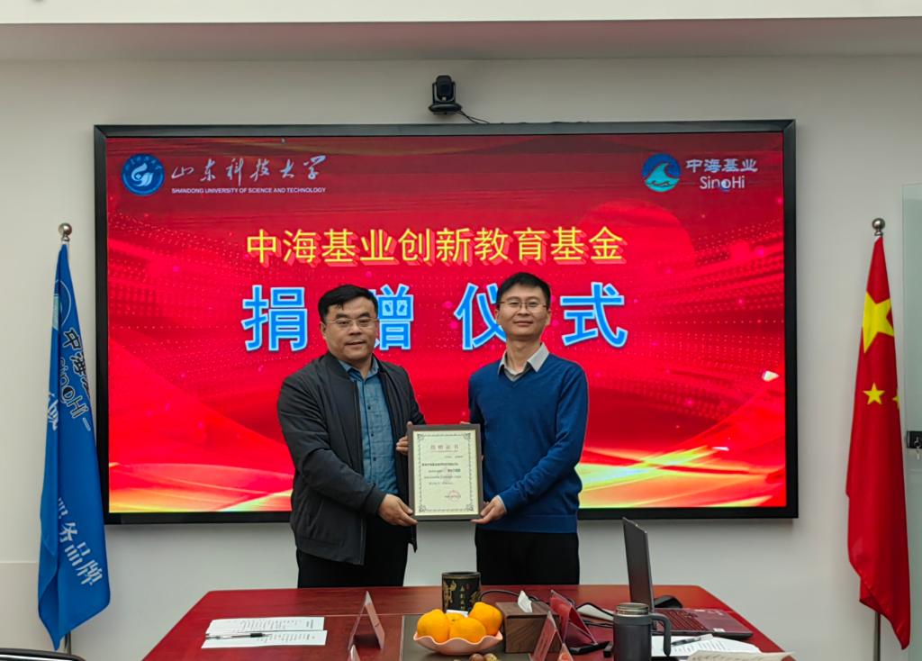 侯健代表公司捐赠10万元设立“中海基业创新教育基金”,用于奖励相应研究方向的导师创新工作室和国家级创新项目中表现突出的优秀教师、优秀员工。涂锐对公司关心教育事业表示感谢,公司将科学合理使用“中海基业创新教育基金”,培养更多测绘领域应用型创新人才。