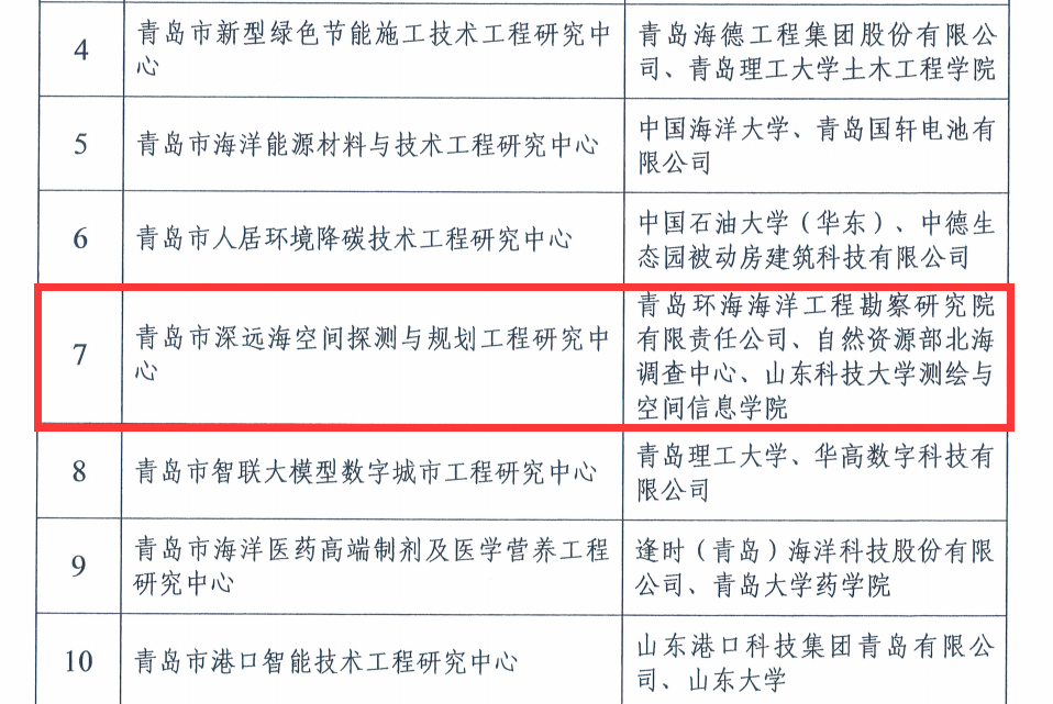 近日,青岛市发展和改革委员会公布2024年新认定青岛市工程研究中心名单,公司申报的“低空信息智能感知工程研究中心”,以及作为共建单位申报的“青岛市深远海空间探测与规划工程研究中心”成功获批。