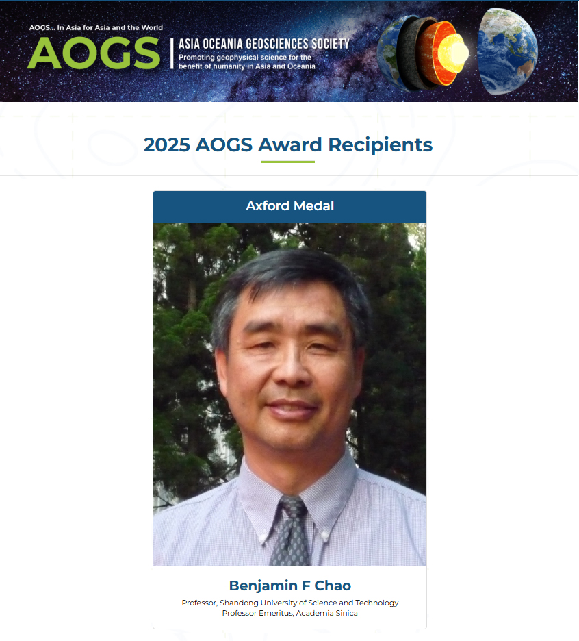 近日,亚洲-大洋洲地球科学学会(Asia Oceania Geosciences Society, AOGS)公布了2025年度“艾克斯福特奖”(Axford Medal)获奖人选,MK体育赵丰教授获该奖项。