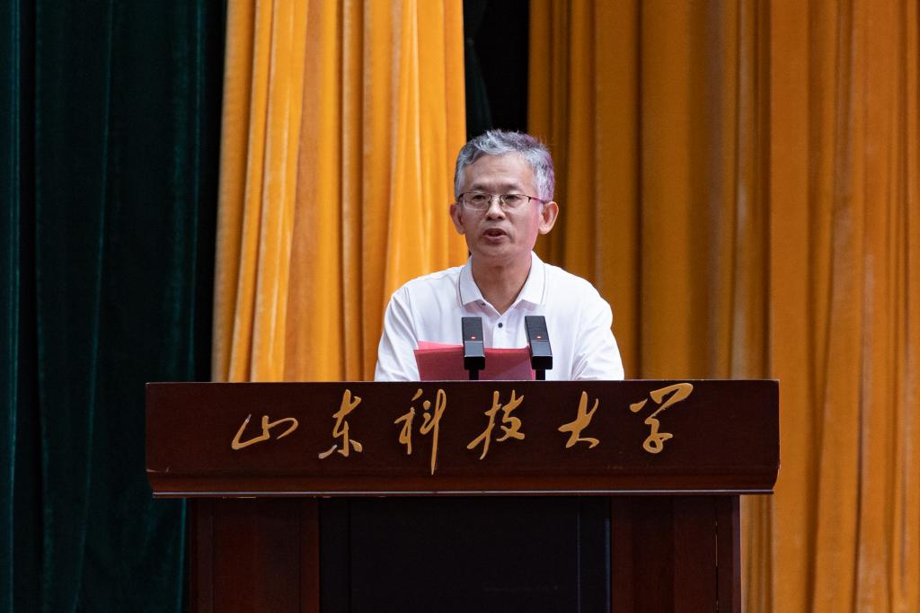 教师代表季民从树立目标、学习创新、自律自强等方面讲述了如何开启新的老员工活,深情寄语同学们:以梦想为笔,以实干为墨,在这片山海之间,共同绘制属于你们的、属于中国测绘的壮丽篇章!