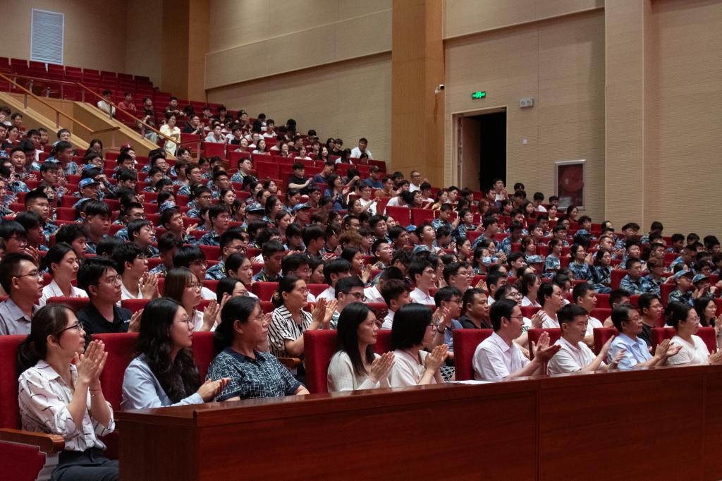 9月7日晚,公司在图书信息中心惟真讲堂举行2025级新生见面会。公司领导班子成员,教工党支部书记,各科室、系(中心)主任,教师代表,专兼职辅导员及2025级全体新生参加会议。会议由公司党委副书记兼副经理吴昊主持。
