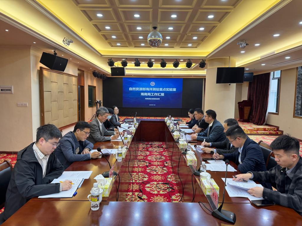 随后,阳凡林一行到访自然资源部海南测绘地理信息局,与副局长岳建利、国土测绘处副处长路志鸣、海南基础地理信息中心主任熊小青等进行交流。座谈会上,阳凡林介绍了双方共建的自然资源部海洋测绘重点实验室的建设进展与未来规划,岳建利回顾了已有合作成果。双方聚焦实验室建设目标、科研合作深化与人才培养机制等进行了务实讨论,明确了实验室下一阶段的发展路径。