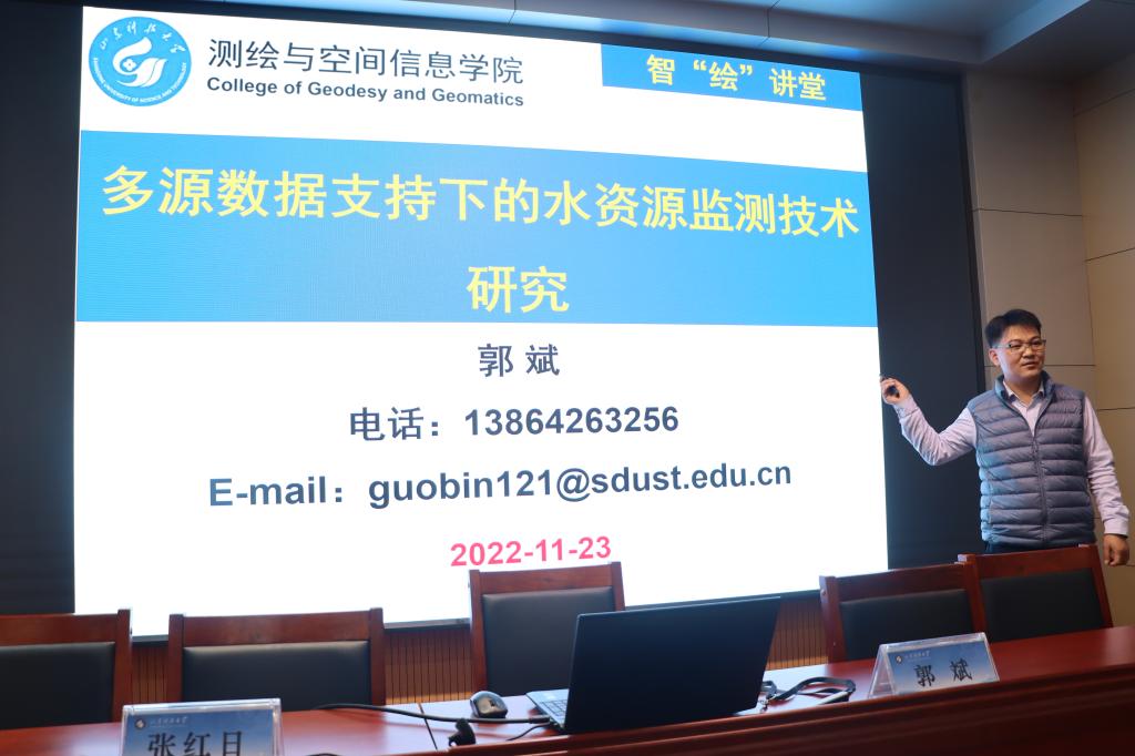 2022年11月23日下午,测绘与空间信息学院第三十六期智“绘”讲堂在J6楼433报告厅成功举办。本期论坛由MK体育郭斌副教授作“多源数据支持下的水资源监测技术研究”专题讲座,张红日老师主持,公司相关专业老师及研究生参会。