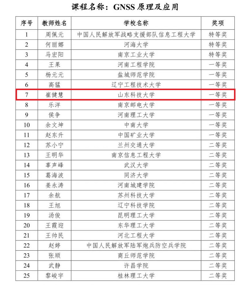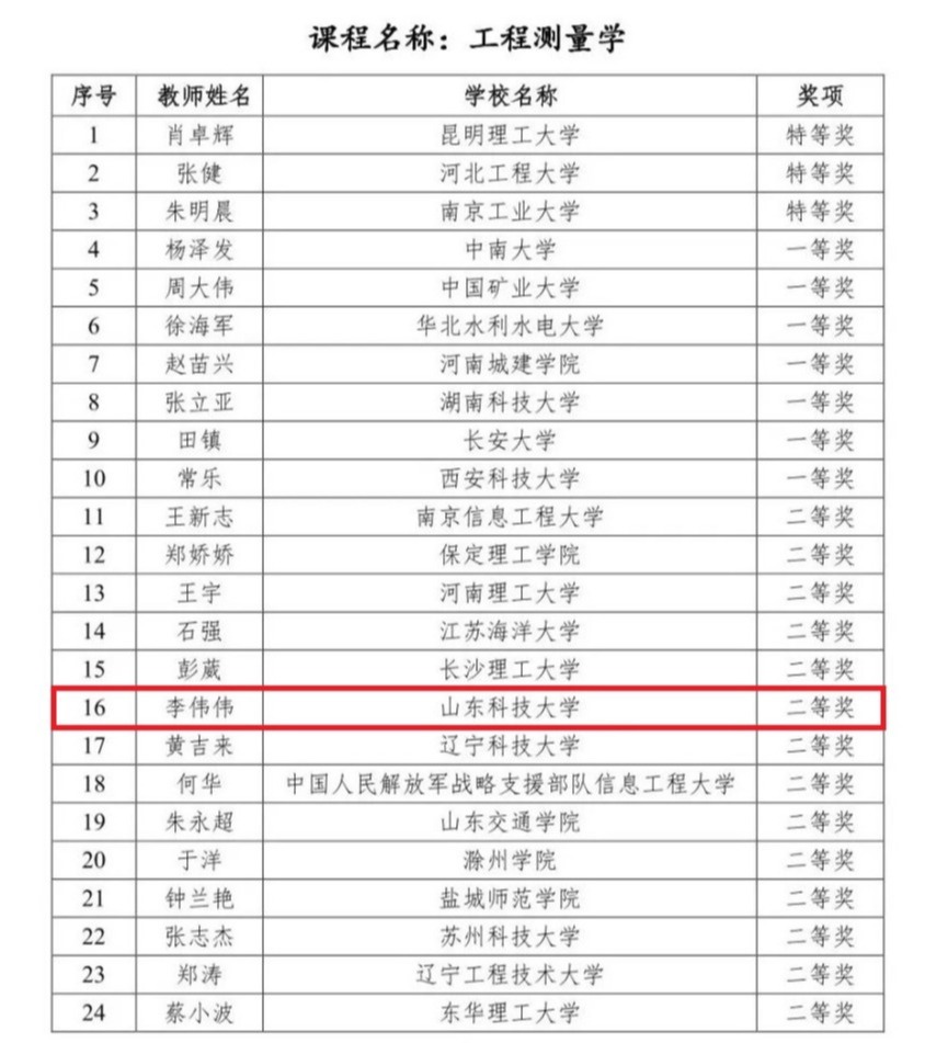 近日,2023年全国高等公司测绘学科教学创新与育才能力大赛——青年教师讲课竞赛决赛在湖南科技大学落下帷幕。公司地理信息系孔冬贤老师获“遥感原理与应用”组一等奖,测绘工程系崔健慧老师获“GNSS原理及应用”组一等奖,海洋测绘系李伟伟老师获“工程测量学”组二等奖。