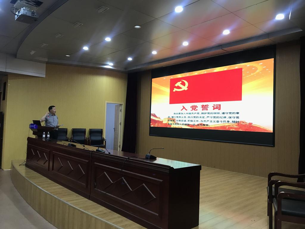 5月30日下午,公司党委书记朱建国为公司全体教职工及员工党员、入党积极分子讲授党课。朱书记以“中国共产党入党宣誓和入党誓词的沿革”为题,从入党宣誓的沿革、如何组织入党宣誓、入党誓词的沿革和重温入党誓词四个层面展开了生动精彩的讲授。