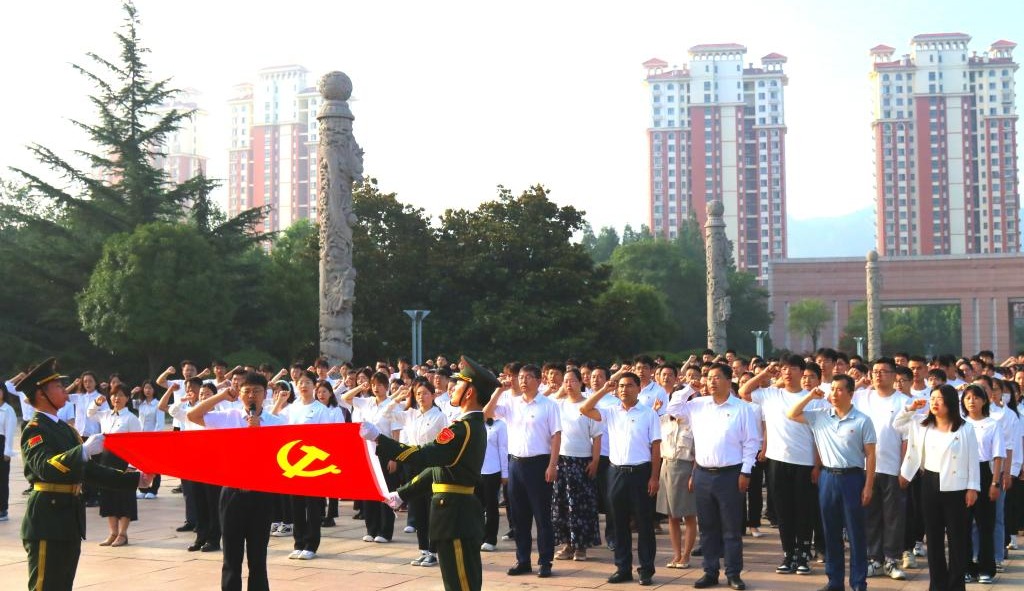 6月30日清晨,为庆祝中国共产党成立102周年,​MK体育在泰山广场隆重举行庆祝中国共产党成立102周年“七一”升国旗暨重温入党誓词活动,公司全体师生党员参加。