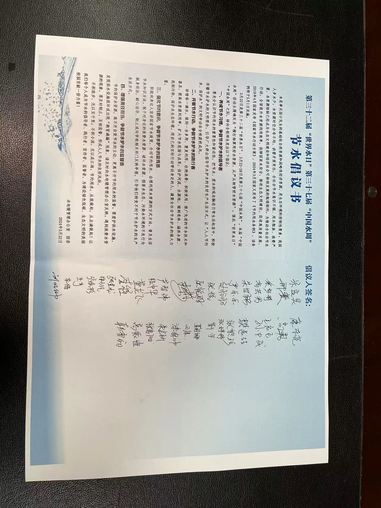 会议伊始,韩雪丽结合“湄公河四国与中国用水争端”这一案例,阐述了当今世界水资源短缺问题日益突出的背景及现状,强调了节约用水的重要性。随后,结合生活中常见的水资源浪费现象,分享了一些生活中节约用水的小窍门。最后,韩雪丽号召党支部全体党员积极响应公司倡议,签署节水倡议书,志愿用实际行动为水资源保护贡献力量。