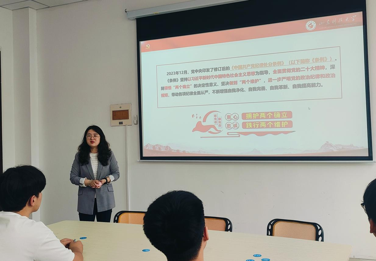 本次党课围绕《中国共产党纪律处分条例》展开,紧扣习近平总书记关于严明党的纪律建设的重要论述,阐明了《条例》的历次修订情况,深刻分析其重要意义,逐条讲解《条例》修订部分的主要内容,敦促党员青年认真学习并领会其主旨要义。