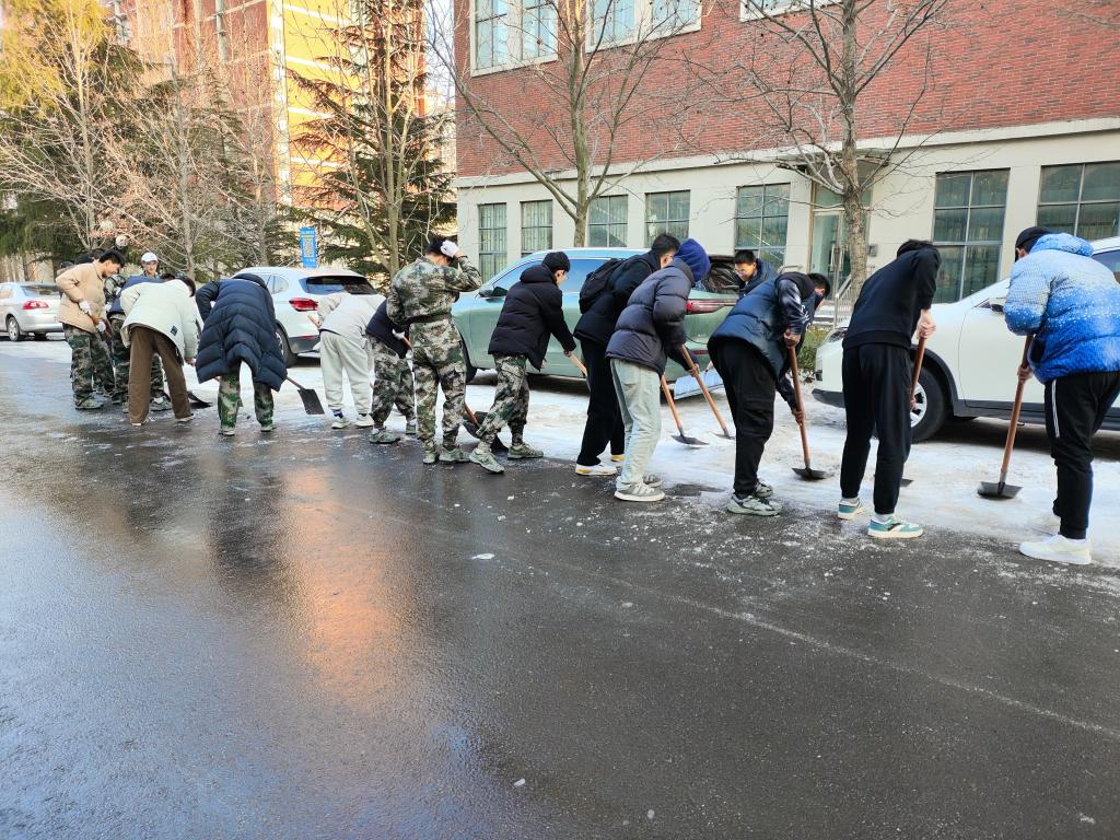 开学第一天,扫雪除冰暖人心