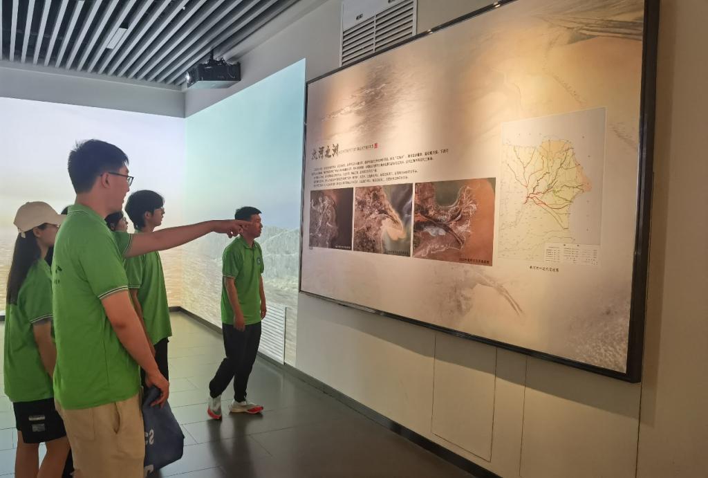 文化馆的建筑方正,形似中国传统礼器——鼎的造型,正面上方镶嵌着黄河儿女战天斗地、繁衍生息的巨幅浮雕。成员们学习了关于黄河和东营的故事,深刻体会到了黄河文化馆通过“志说黄河、志说东营”形式展现的宏观、立体、人文、生动的黄河。感受到黄河的波澜壮阔和黄河文化的博大精深。馆内以“大河奔流”为主题,分为“中华母亲河”和“魅力黄河口”两大板块,共设八个展厅,内容涵盖黄河起源、大禹治水、历史上黄河六次大改道、沿岸风土人情、东营的历史文化、胜利油田的开发利用,以及当代黄海入海口的湿地保护等篇章。员工们在参观的过程中,在指导老师崔晓东老师的指导下,通过学科专业视角对展馆内容进行深度解读,将专业知识与展馆内容相连接,从遥感技术的视角解读黄河的形势与变迁,通过海洋测绘技术展现黄河入海口的湿地保护与海洋资源利用等重要篇章。