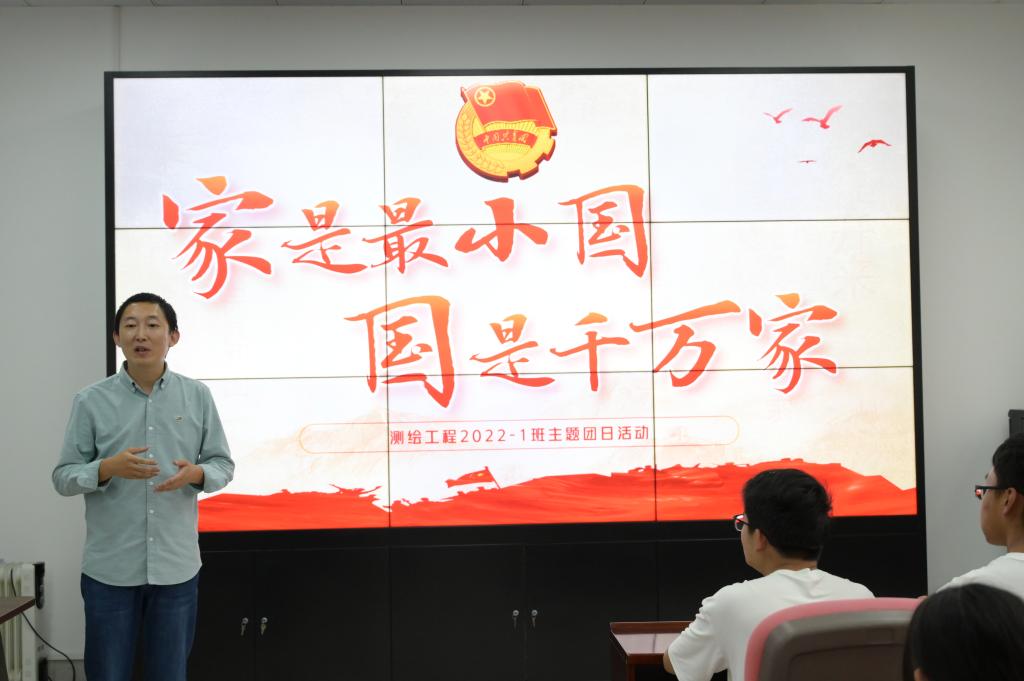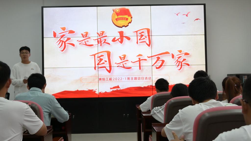 当中秋遇上国庆,双节连璧,团圆日多了份爱国情怀,国庆日增添了思念之情。为激发员工爱国、爱家的情感,9月26日,测绘工程2022级1班在J6-251开展“家是最小国 国是千万家”主题团日活动,班主任辛明真、辅导员张德彪共同参加,活动由团支书王若舟主持。