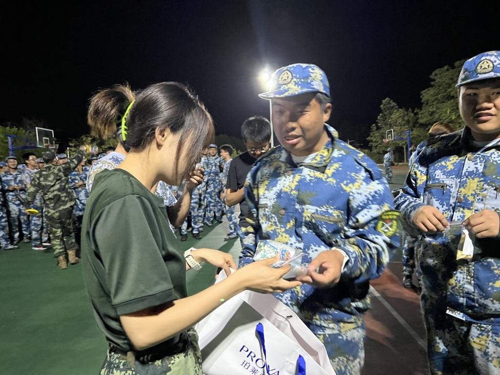 14日晚,教官们给每一位同学准备了爱心礼物,当晚结训后发放到每一位同学手中,员工也表达对教官的感谢,并表示一定要努力学习,自立自强,积极参加社会实践,尽快成长为社会需要的有用人才。随后,同学们纷纷与教官合影留念。(通讯员:牛盛光)
