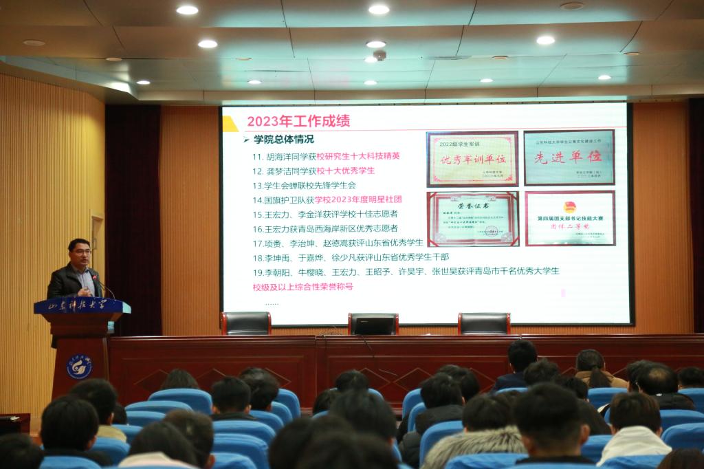 会上,吴昊从思想引领、科技创新、员工公寓、学风建设、就业创业等方面总结了2023年公司总体情况,在肯定取得成绩的同时也着重分析了不足与短板,同时对2024年公司重点工作进行了介绍。随后,学工办主任(团委书记)孙金香对新学期开学前后相关工作进行了布置安排。