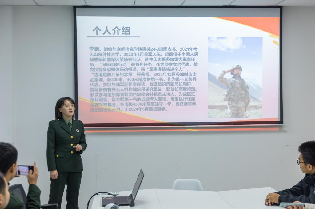 公司邀请了退役复学的员工代表李松达、李飒结合自己的亲身经历,讲述了在军营中的成长历程和所收获的宝贵财富。从日常训练到实战演练,从战友情谊到家国情怀,他们的分享让在场的同学们深受感动和启发。活动还组织预征体检,并为有入伍意向的员工提供一对一的精准服务,让同学们更深刻地感受到军队成长成才的优良环境,了解老员工入伍在政治荣誉、经济待遇、就业创业等方面的优惠政策。