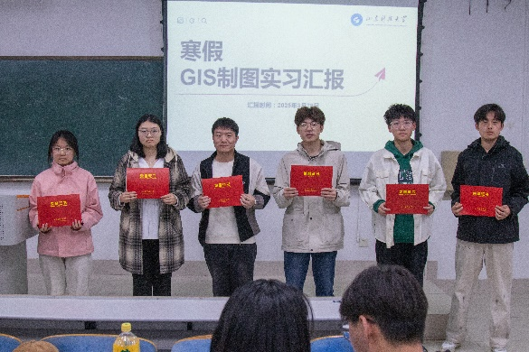 经过一个寒假的学习和实践,MK体育地理信息协会成员以小组为单位,完成了第九届全国GIS应用技能大赛的所有题目。评讲开始,各个小组开始展示制图成果,并分享作业中遇到的问题与解决方案。小组汇报后,评委团对汇报人进行提问、点评和打分。待所有小组汇报完,评委团对打分进行计算,评出名次。