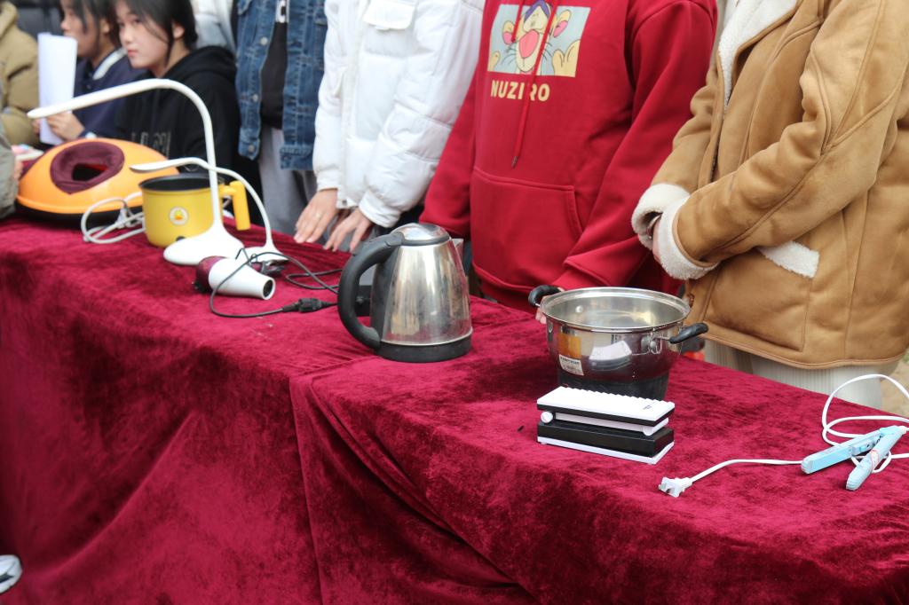 活动现场,集中展示了电动车充电器、电饭煲、卷发棒、烧水壶、暖脚宝、充电台灯等违禁电器。MK体育自律会干事们向同学们详细介绍了使用违禁电器带来的安全隐患,并呼吁全体同学遵守公司的员工公寓管理规定,共同维护公寓安全。