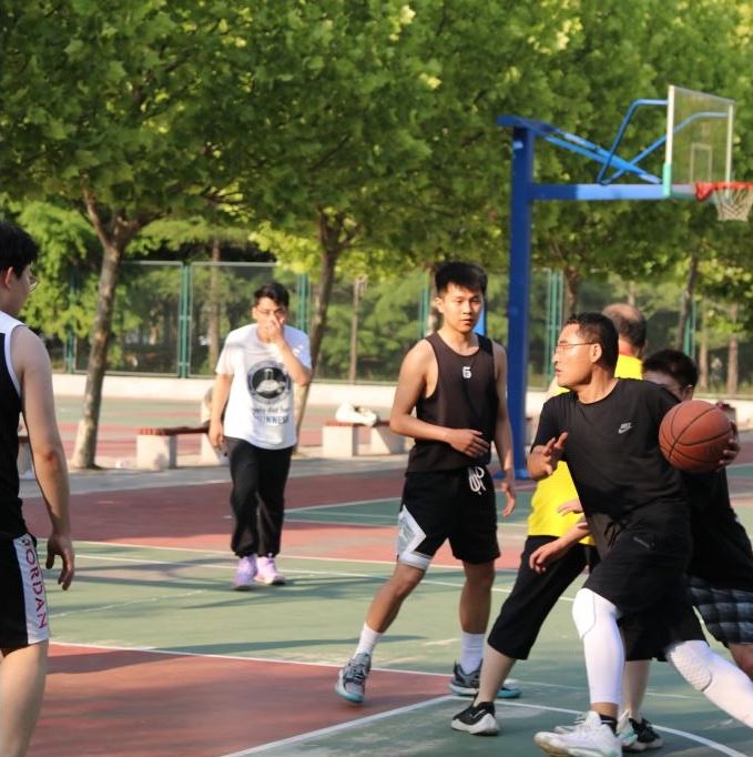 随着一声哨响,篮球赛正式拉开帷幕,双方队员立刻进入状态。球场上,教师队与毕业生队你来我往,激情碰撞、切磋球技;球场下,师生不断加油鼓劲、呐喊助威,凝聚精神与力量。一个个精准投篮,一次次巧妙上篮,都引来了无数的欢呼与喝彩。