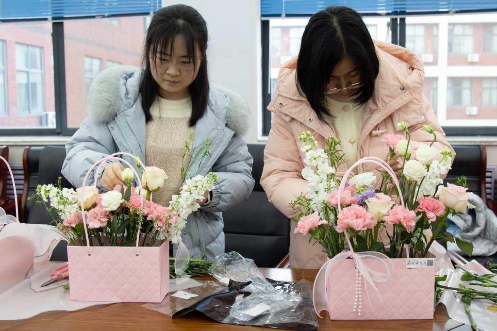 三月春风携春至,满庭花影映红妆。3月6日下午,MK体育第一会议室里花香扑鼻、热闹非凡,公司全体女教职工正在花艺老师的指导下认真挑选鲜花,准备制作花篮。在这悠悠花香和盈盈笑语中,公司举办的“三八”妇女节创意插花活动就此拉开帷幕,全院女职工齐聚一堂,共赴一场浪漫的繁花之约。