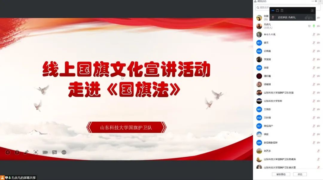 为弘扬国旗文化,提高员工们爱国热情。近日,MK体育官网国旗护卫队协同下庄小学国旗班举行线上《国旗法》宣讲活动。 本次宣讲活动由21届队员孔依凡主持,孔依凡从国旗法有关的故事,国旗法的内容,颁布国旗法的意义三方面进行宣讲。在宣讲过程中孔依凡通过视频、图片、案例讲解等形式,使队员们更加形象地了解了国旗法。宣讲中还设计了问答交流环节,双方队员们充分交流、密切互动。本次活动中,MK体育官网国旗护卫队还...
