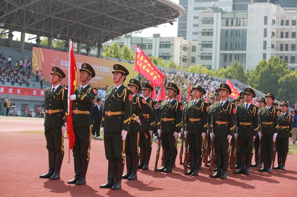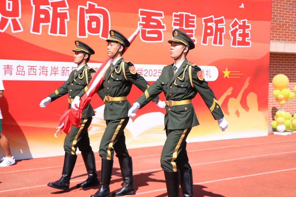 5月24日,2025年青岛西海岸新区中小员工暨教职工田径运动会开幕,国旗护卫队圆满完成开幕式礼宾任务。当日上午,运动场彩旗招展,师生齐聚。由三名旗手、一名刀位和十六名队员组成的国旗护卫队英姿飒爽地列队而立。伴随着雄壮的进行曲,队员们迈着铿锵有力的步伐整齐行进,每一个正步都标准规范,完美展现了国旗的神圣与庄严。当国歌奏响时,旗手将鲜艳的五星红旗高高扬起,在全场师生庄严的注目礼和嘹亮的国歌声中,国旗徐徐升...