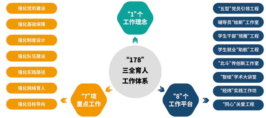 MK体育员工工作办公室现有辅导员10人(含2名优选辅导员),始终坚持立德树人根本任务,实施以精神文化、制度文化、行为文化、环境文化为主要内容的“经纬蓝图”文化工程,构筑传统文化长廊、学科发展历史长廊、院士寄语长廊,感悟测绘文化底蕴、铭记大国工匠重托厚望,同时构建了“178(一起吧)”三全育人工作体系。
