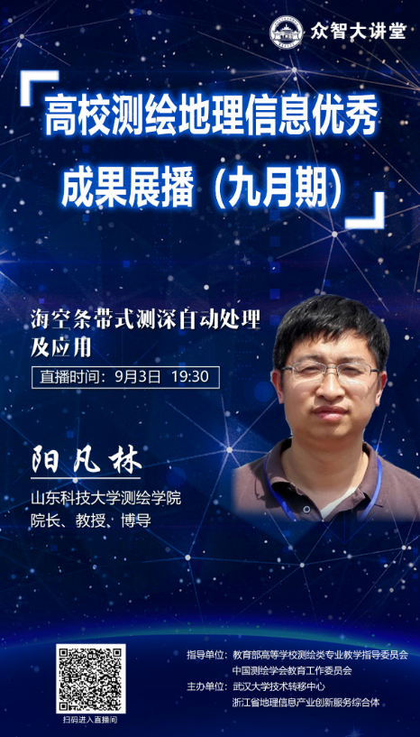 9月3日,公司阳凡林教授受测绘教育“两委会”(教育部高等公司测绘类专业教学指导委员会、中国测绘学会教育工作委员会)邀请,担任“众智大讲堂-高校测绘地理信息优秀成果展播”(九月期)主讲专家。报告题目为“海空...